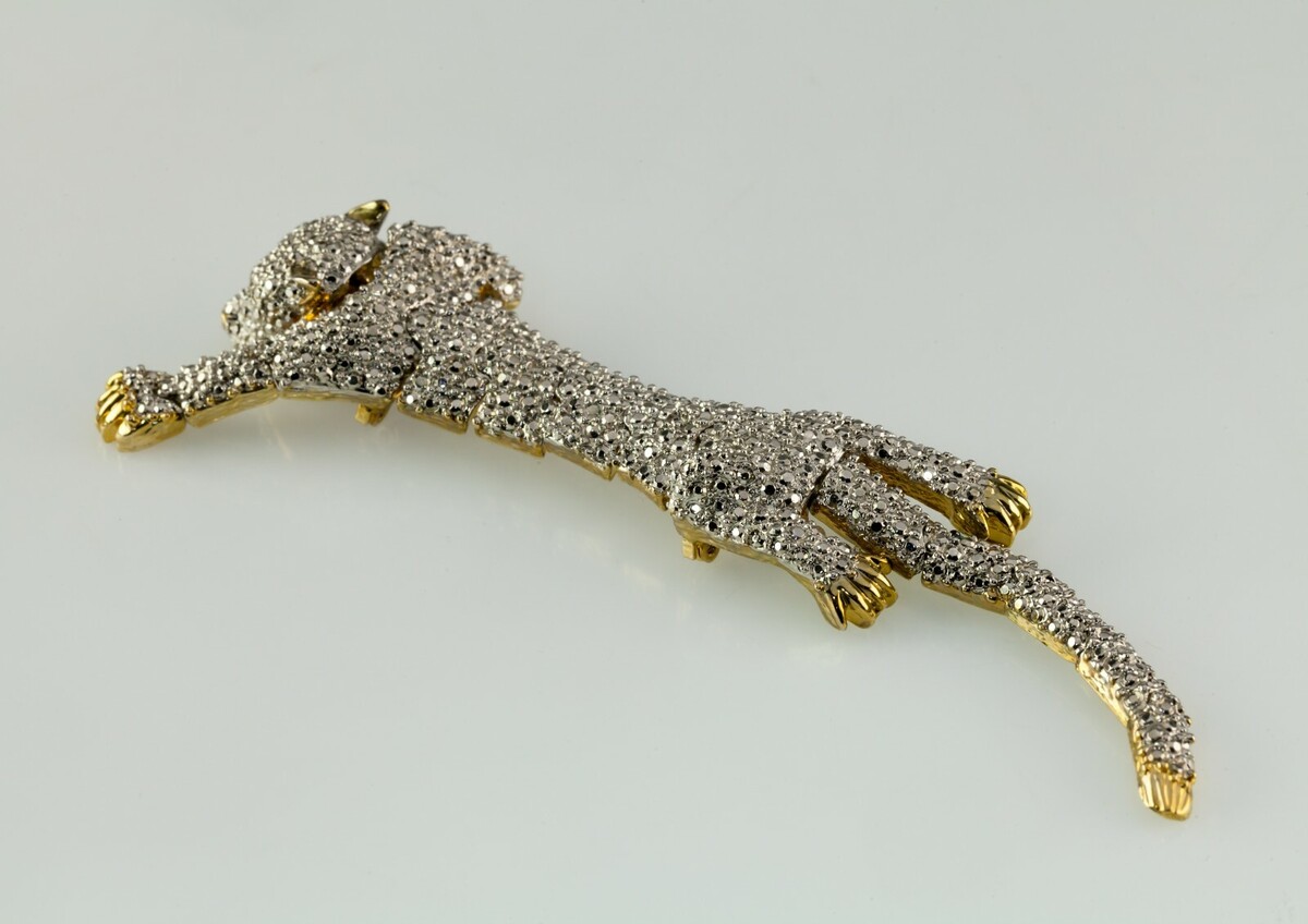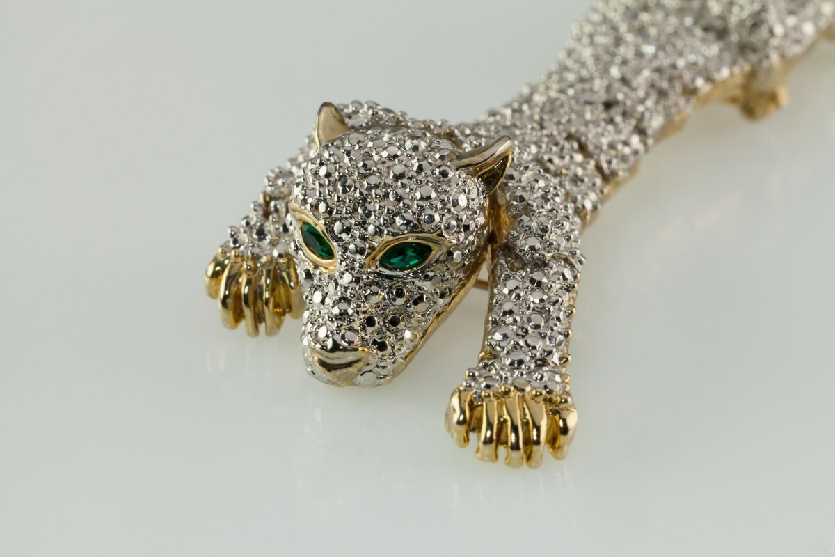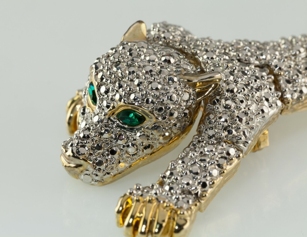 Vintage Articulation Costume Shoulder Broch Panther Crystal 1980s