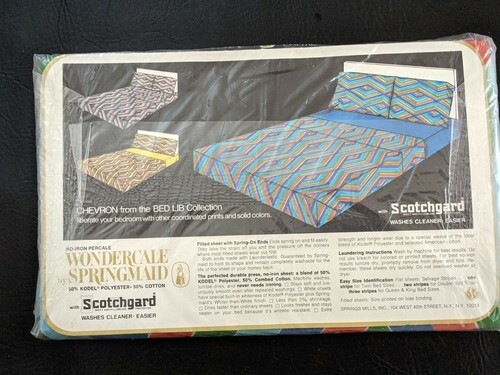 Up for sale is a new 1970s Springmaid Wondercale Chevron Double Fitted Flat Pillow Case Sheet Set.
