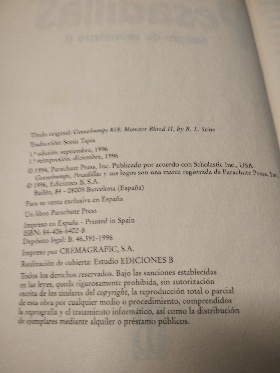 Nightmares de sangre II RL Stine 1996 Ediciones B - BOOK Spanish American