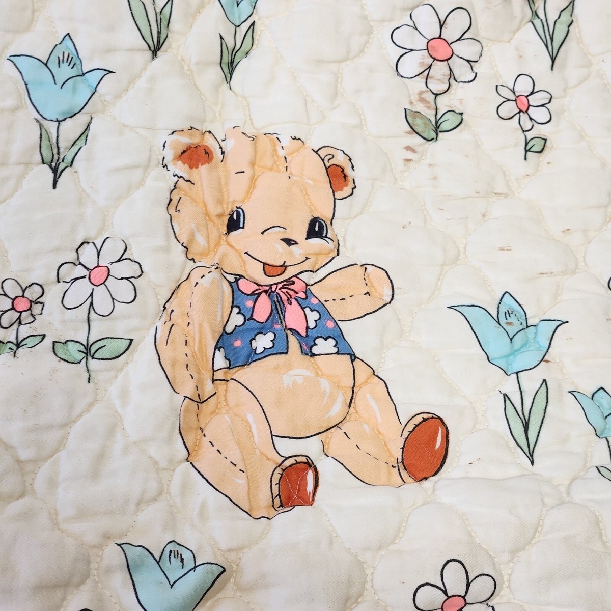 VINTAGE BABY INFANT SECURITY BLANKET TEDDY BEAR ROCKING HORSE CAT DUCK QUILT
