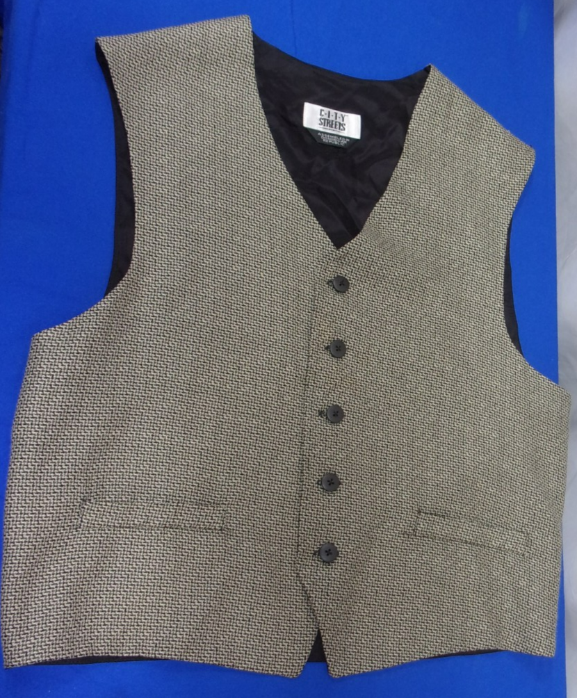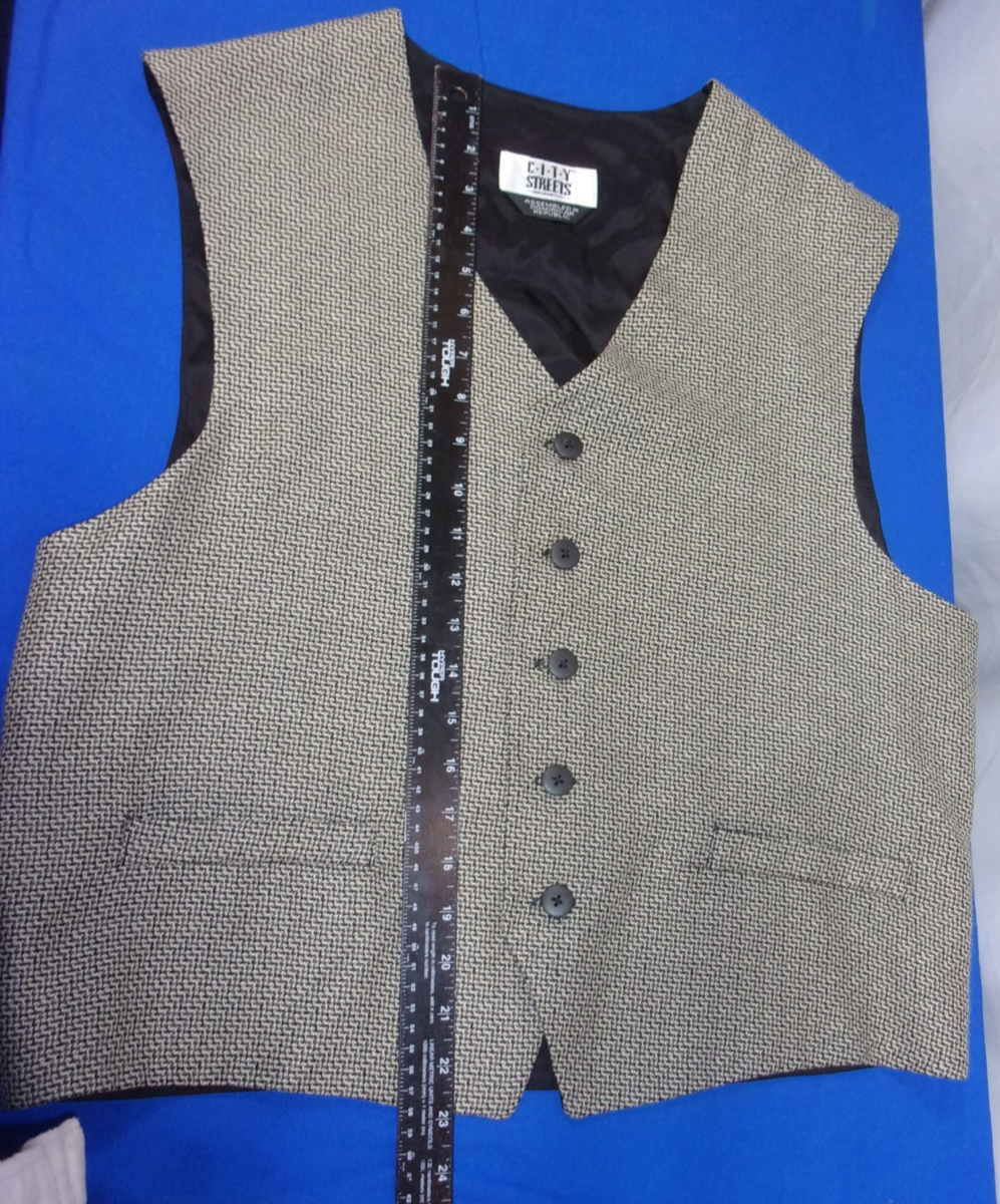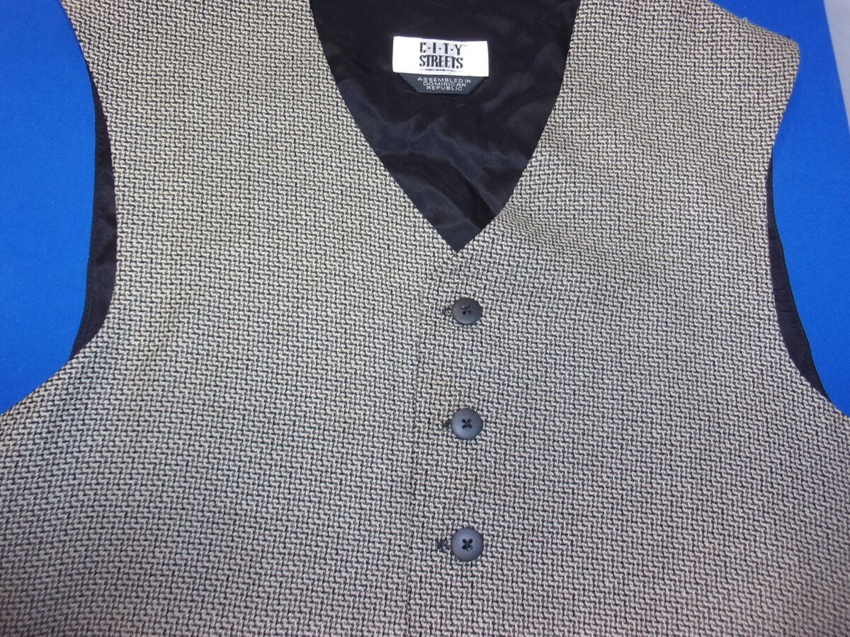 DESIGNER CITY STREETS RAYON/POLY BLEND GRAY/BLACK DRESS SUIT VEST SIZE MEDIUM