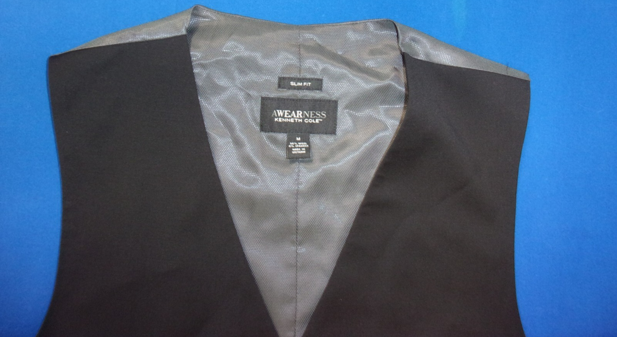 DESIGNER AWARENESS KENNETH COLE SLIM FIT CASUAL DRESS BLACK SUIT VEST MEDIUM