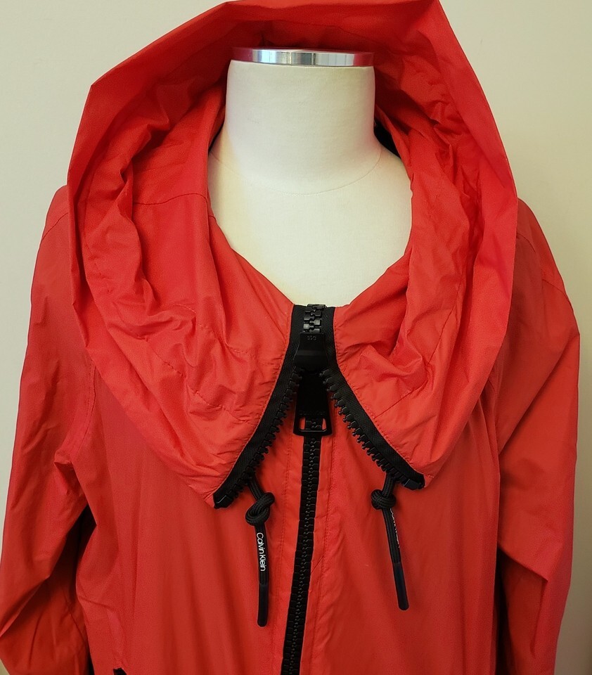 Calvin Klein Hooded Weather-Resistant Long Jacket/Raincoat Size-XS Red
