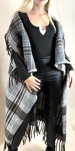 VENTI 6 Italy Cape Coat Plaid Fringe Edge and 30 similar items