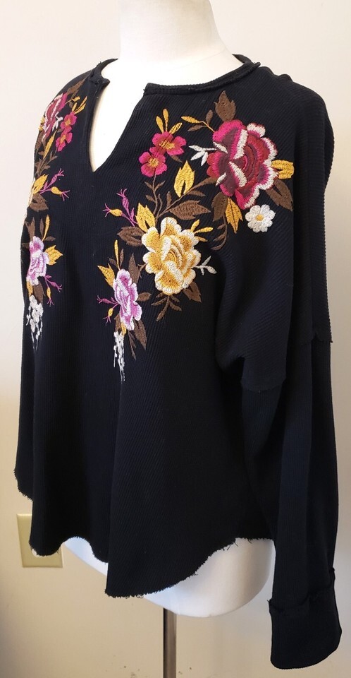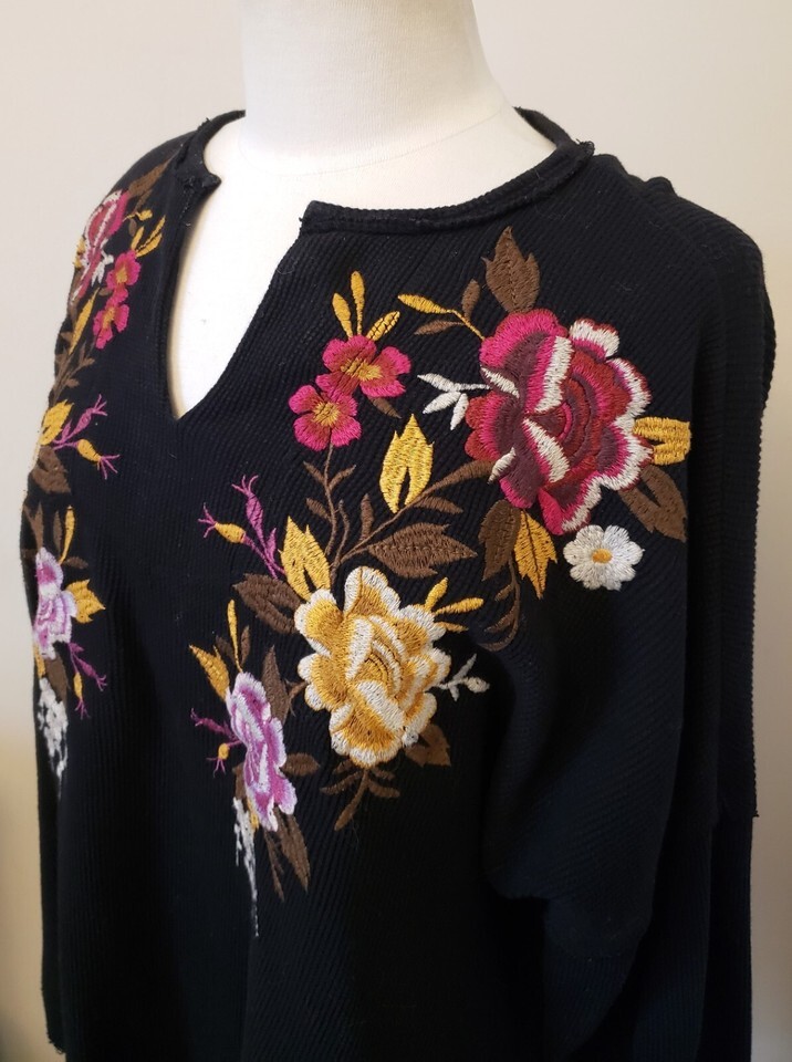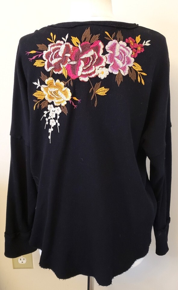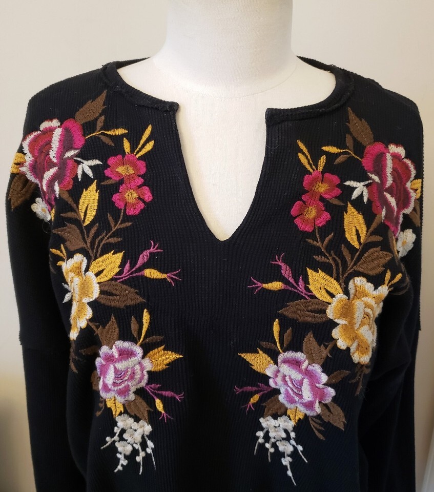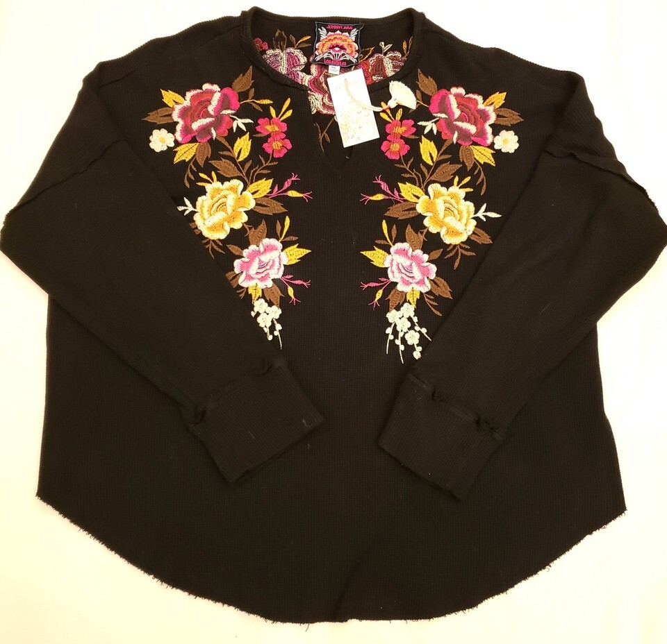 Johnny Was Floral Embroidered Top Size-PXL Black