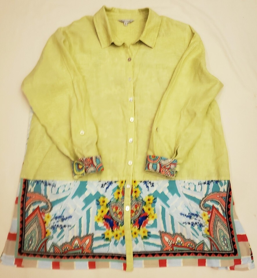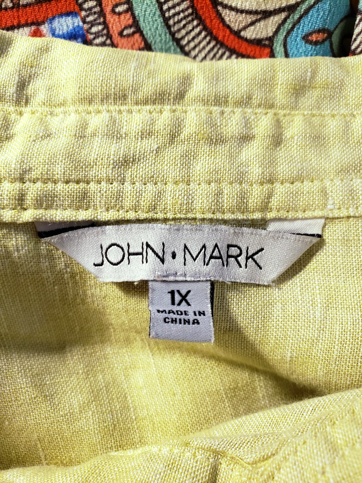 John Mark 100% Linen Button-down Tunic Dress Size-1X Lime