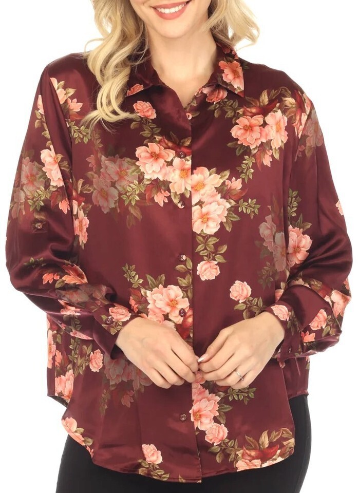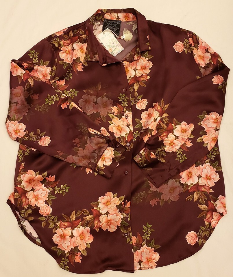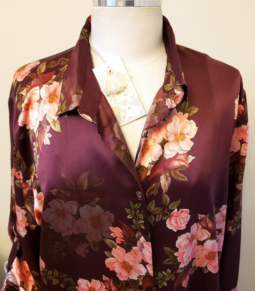Johnny Was 100% Silk Button-Up Shirt Size-L Floral Multi