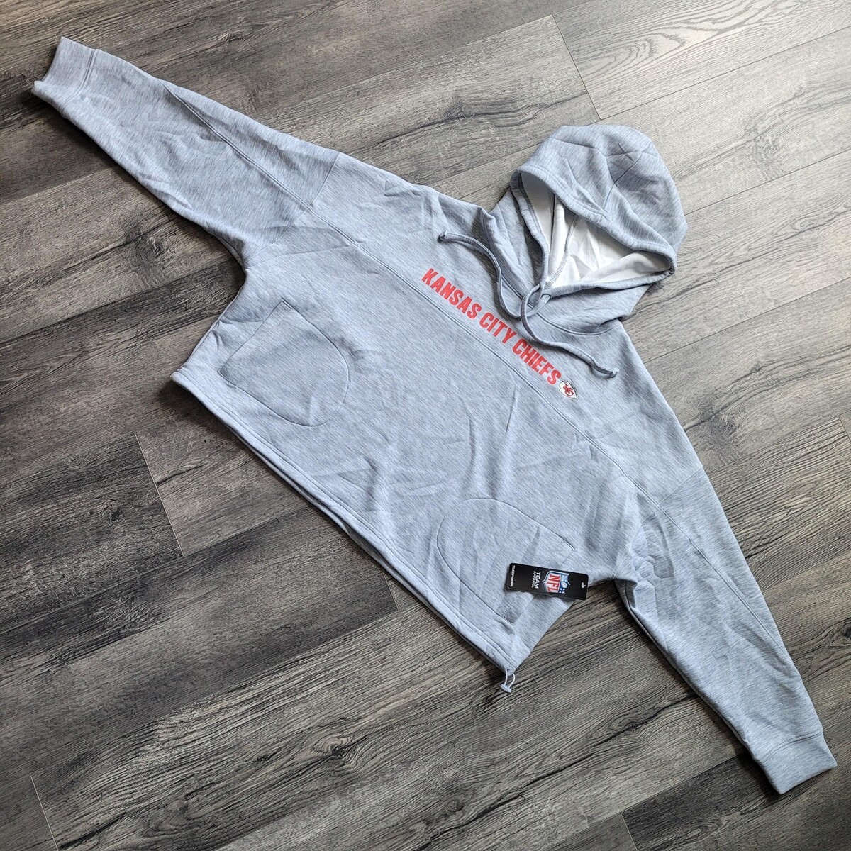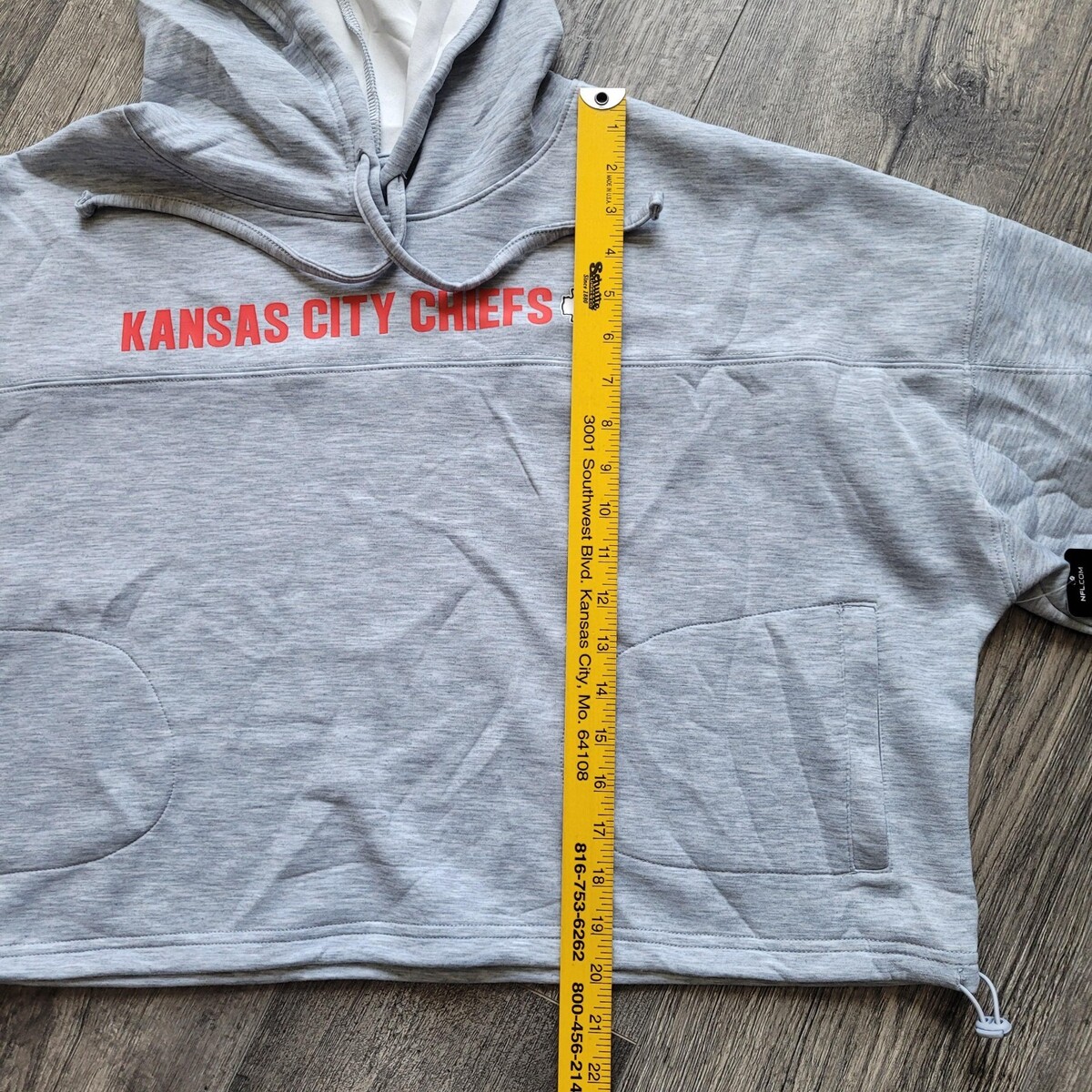 New NFL Kansas City Chiefs Women's Gray Red Crescendo Crop Hoodie Pullover XL