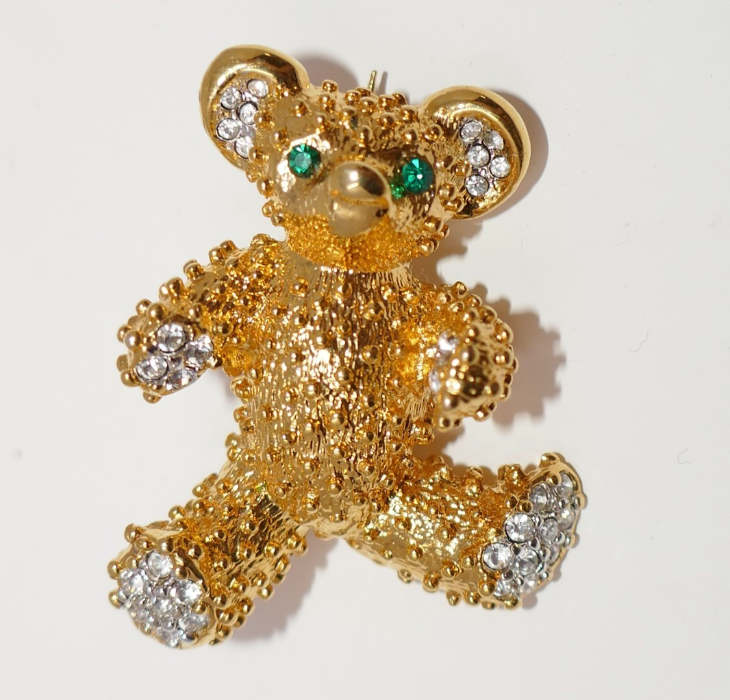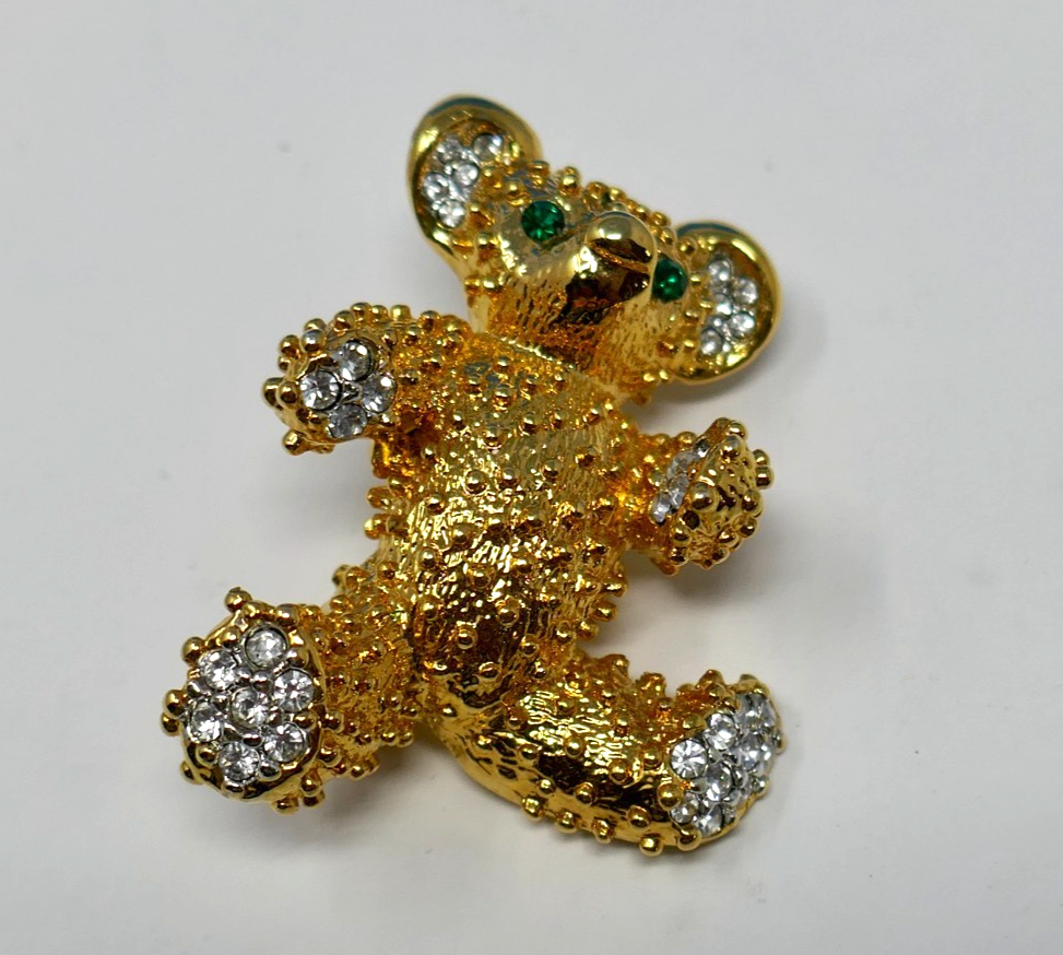 Gold Tone Vintage Teddy Bear Green and similar items