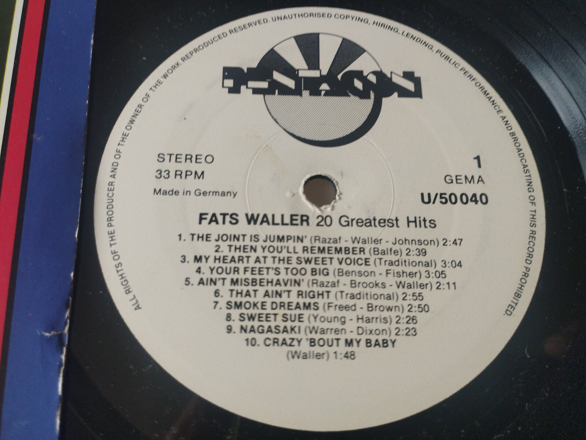 Fats Waller 20 Greatest Hits Jazz U-50040 German Press - LP Vinyl 12" VG/VG