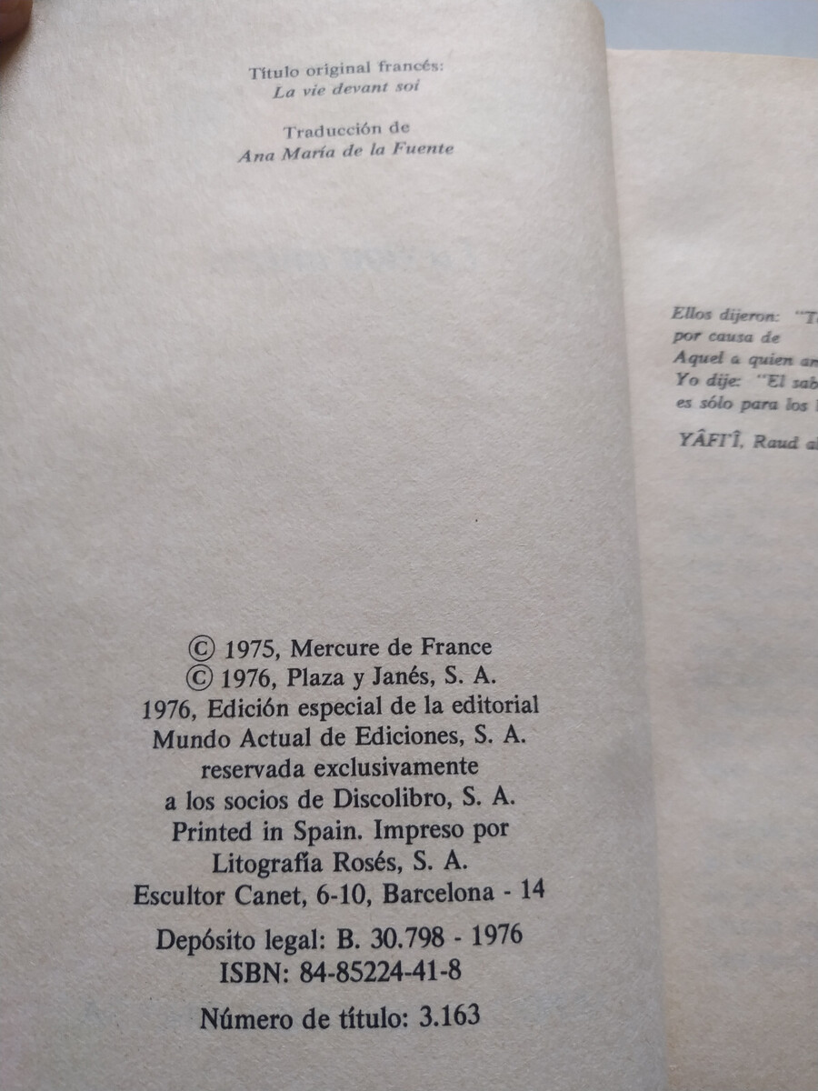 Life Before If Emile Ajar 1976 Plaza and Janes - BOOK Spanish Am
