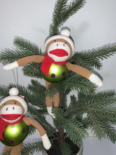 Dan Dee Sock Monkey Christmas Ornament Round Green Ball Body Lot Of 2