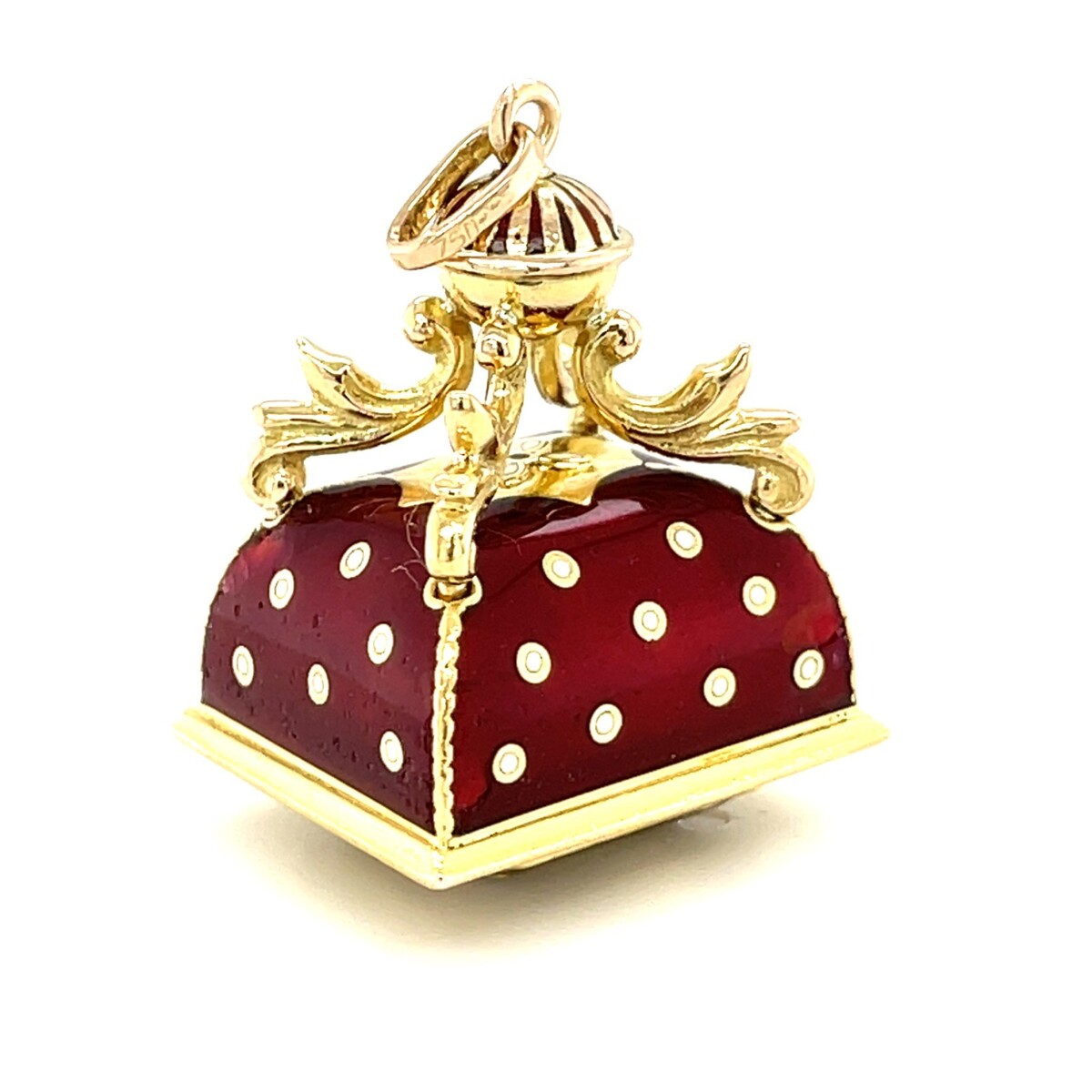 18K Solid Yellow Gold Russian Imperial Style Red Enamel Trinket Box Charm