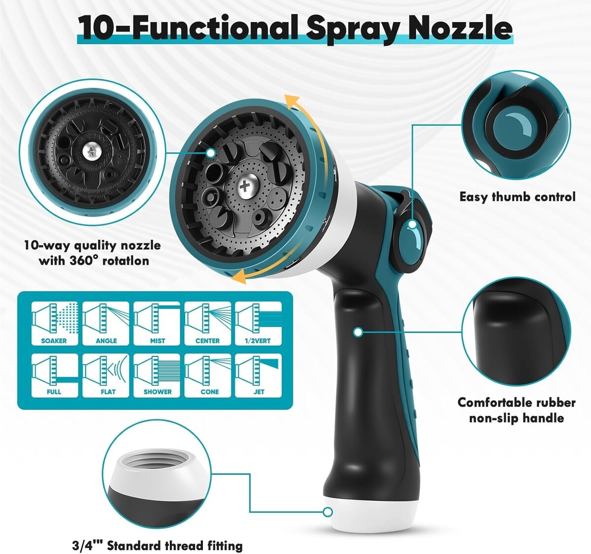 Equipped with a multifunctional nozzle offering 8 spray patterns for versatile needs.