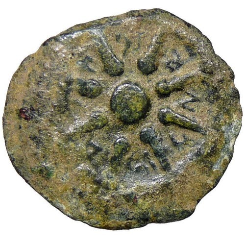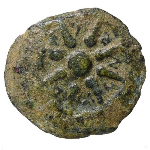 Anchor; Greek inscription, ???????? ?????????Y (of King Alexander). The anchor was adopted from the Seleukid Kingdom, who used it to symbolize their naval strength / Star of 8 rays surrounded by diadem; 'Yehonatan the King' in Palaeo-Hebrew, between the rays of star.