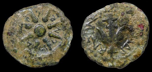 In circulation during the life of Christ Jerusalem mint. These and similar small Hasmonean dynasty coins such as the Widow's mites from the same time and referenced in Mark 12:42-44 and Luke 21:2-4--Jesus tells the story of the Widow who gave all she had, two "mites" --all circulated for nearly 200 after they were minted and were used in Jerusalem until the destruction of the Temple in 70 AD.