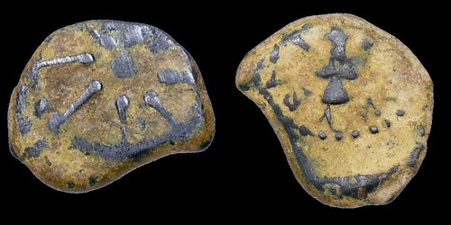 In circulation during the life of Christ Jerusalem mint. These and similar small Hasmonean dynasty coins such as the Widow's mites from the same time and referenced in Mark 12:42-44 and Luke 21:2-4--Jesus tells the story of the Widow who gave all she had, two "mites" --all circulated for nearly 200 after they were minted and were used in Jerusalem until the destruction of the Temple in 70 AD.
