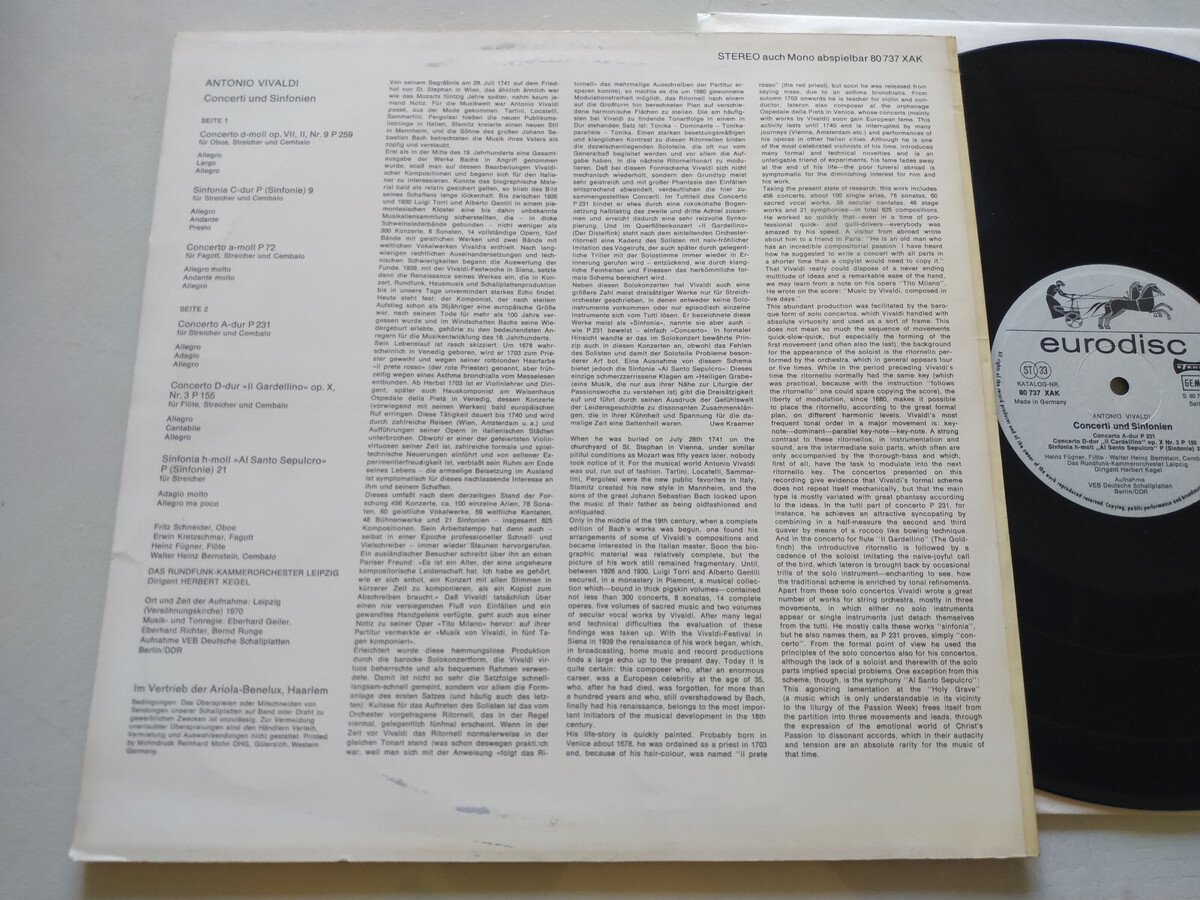 Vivaldi 80737 Xak Concerti Und Sinfonien Herbert Kegel - LP 12 " vinyl VG/VG Am
