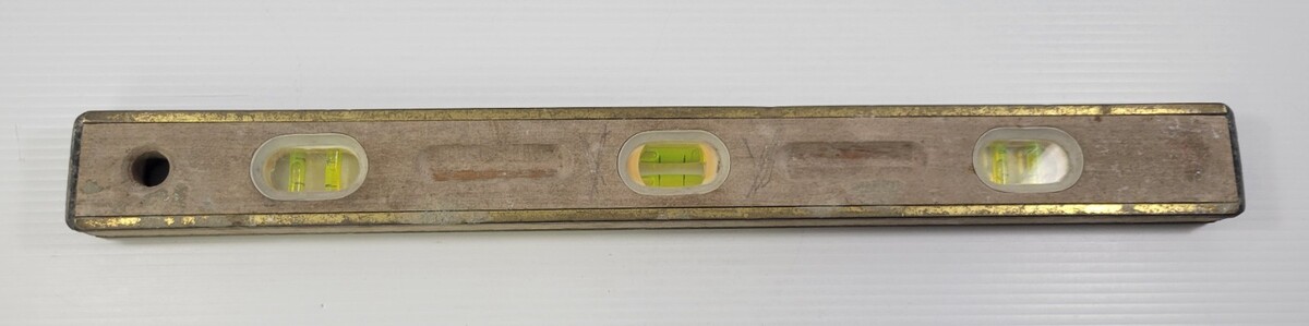 Levels are in vintage used condition with significant signs of masonry use, age and years of garage storage. Levels have some broken glass, missing end caps, scuffs, marks and dirt.