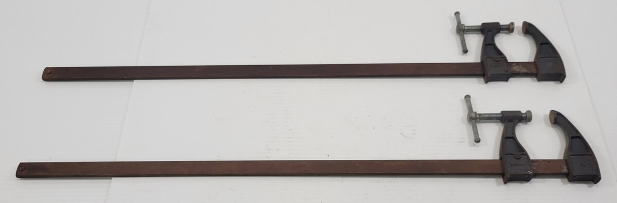 *M) Vintage Pair of 2 Woodworking Carpenter 28" Cabinet Bar Clamps