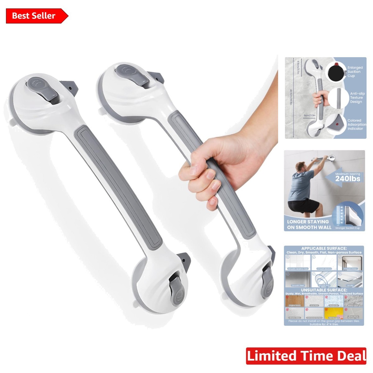 Give the gift of safety to yourself or a loved one with these essential grab bars?an investment in a safer living space. Order the Versatile 2-Pack Suction Cup Grab Bars today and enjoy confidence in your home environment!