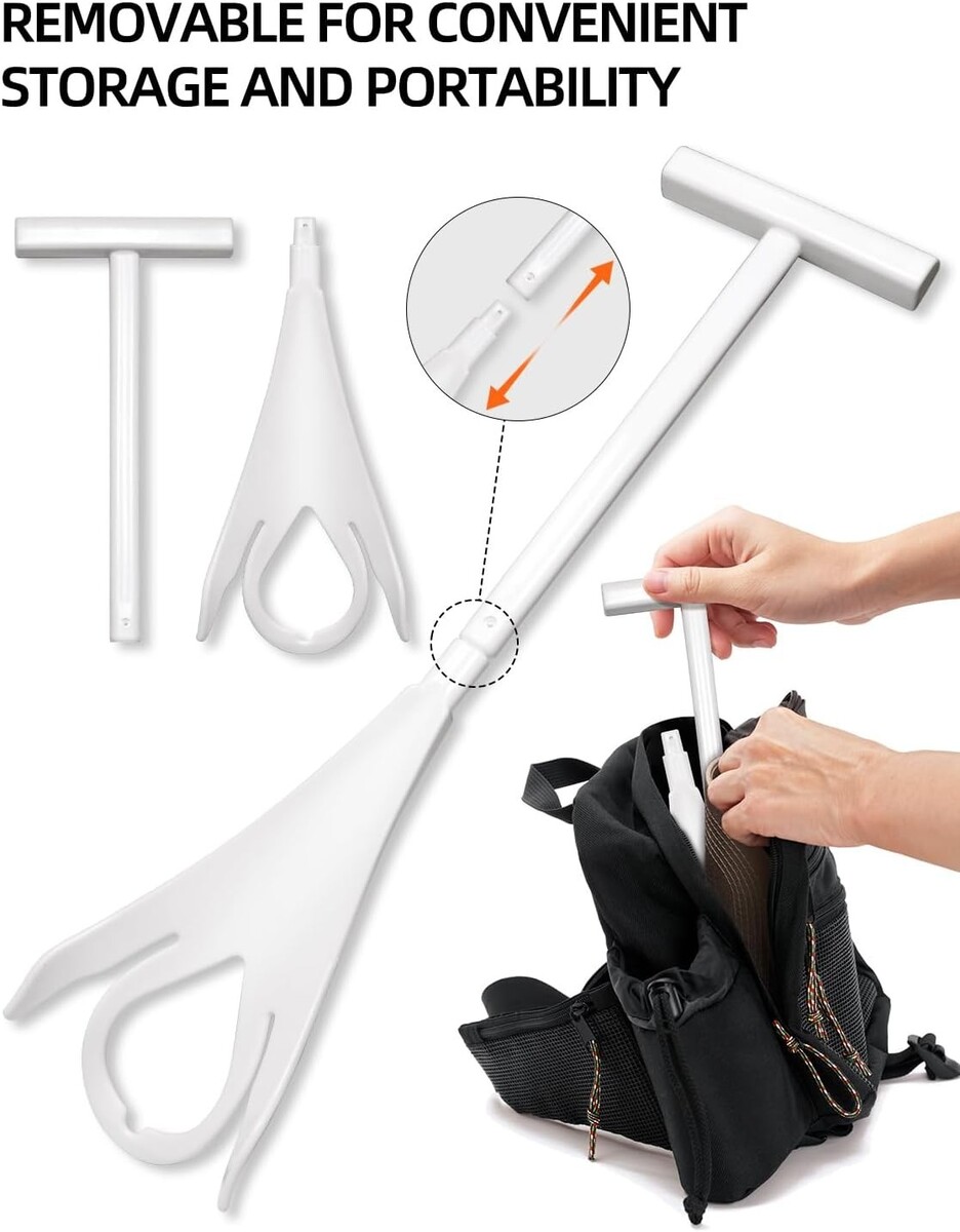 This three-piece sock remover allows flexible assembly, with the option to add nails for extra reinforcement. Quick setup without tools, easy disassembly for storage or travel! Designed with ergonomics in mind, it glides smoothly along the heel for a seamless removal experience!