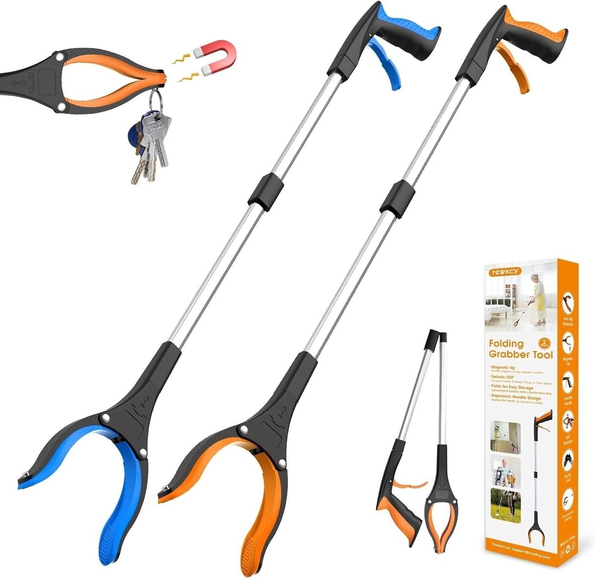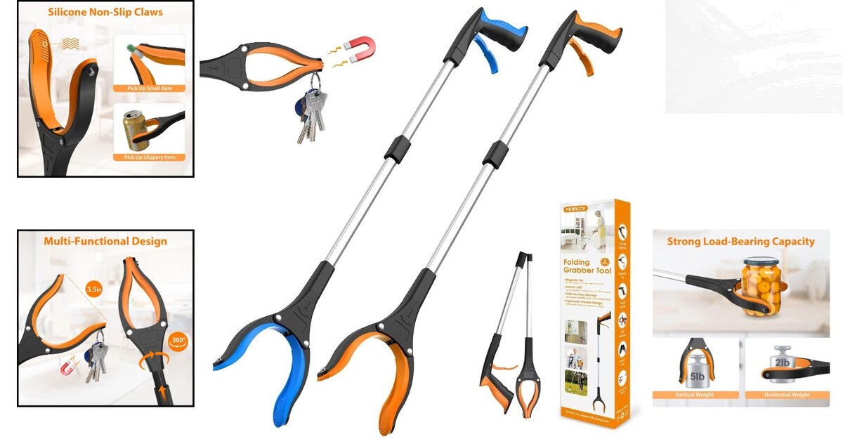 Lightweight 32" Reacher Grabber Tool 2-Pack: Magnetic & Rotating Jaw for Seniors