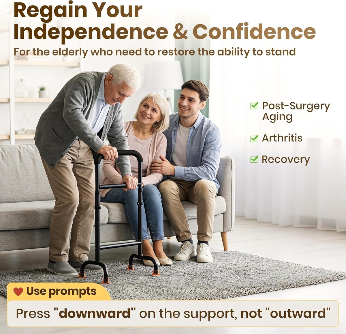 Promotes independence and confidence for seniors, recovering patients, or those needing additional support.