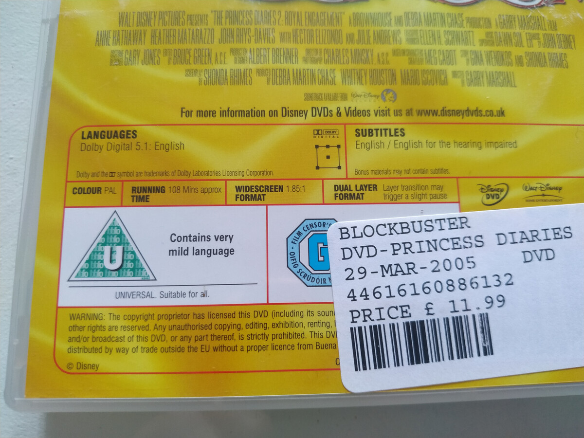 The Princess Diaries 2 Anne Hathaway Julie Andrews Disney - DVD Region 2 English