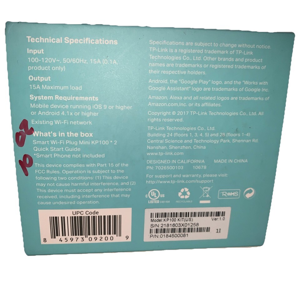 TP Link Wi-Fi Smart Plug Slim Edition KP100 2 pack Works Alexa Google Assistant