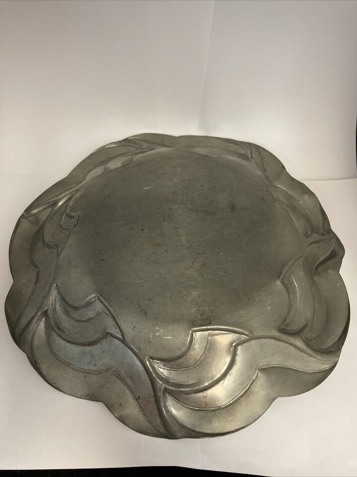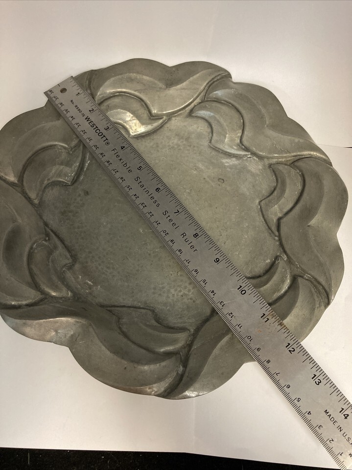 Pierre Lucien DuMont Hand Hammered Pewter Arts & Crafts 12โ Plate France 1930s