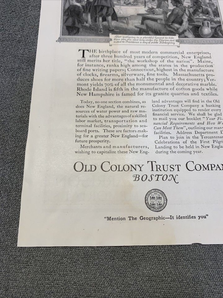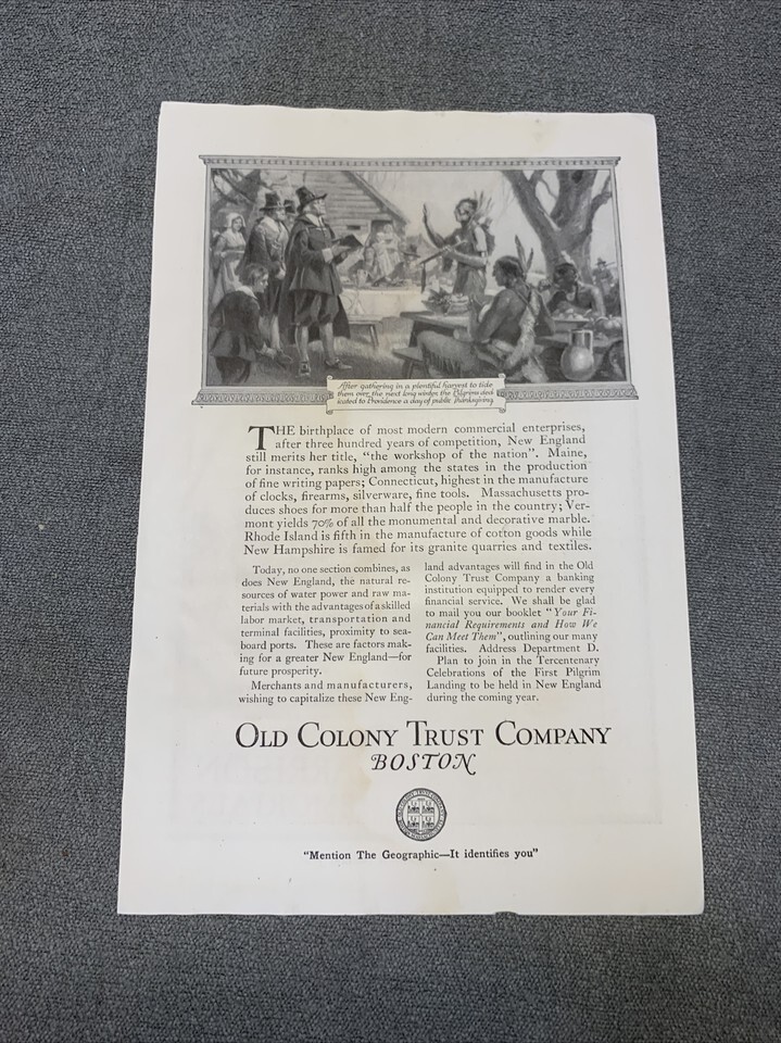 National Geographic December 1922 Old Colony Trust Company Print Ad KG
