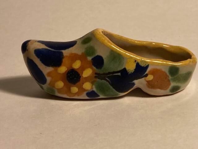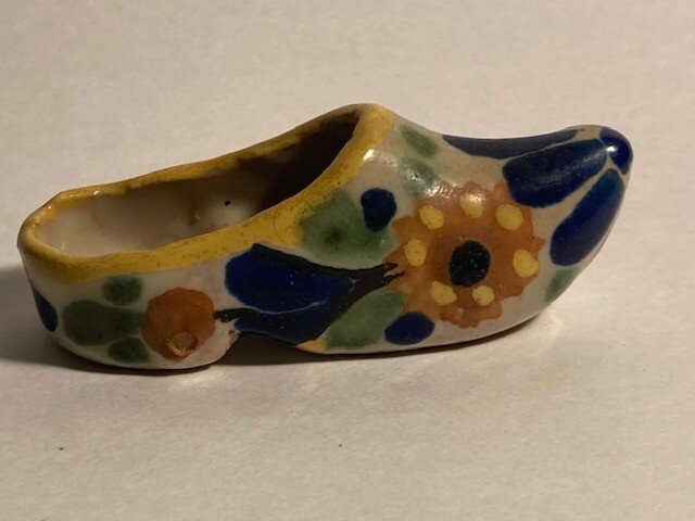 Vintage Hand Made Clay Colorful Miniature Clog Slipper Shoe Floral Design 2.5"