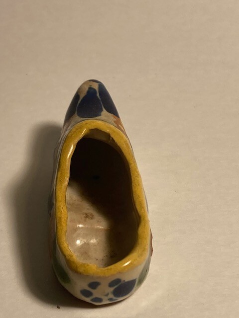 Vintage Hand Made Clay Colorful Miniature Clog Slipper Shoe Floral Design 2.5" Very good. Please refer to images.