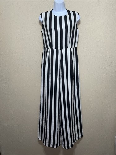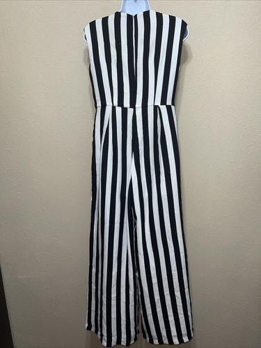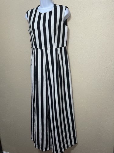 Gracia Wide Leg LONG jumpsuit romper BLACK/WHITE STRIPE SZ Small