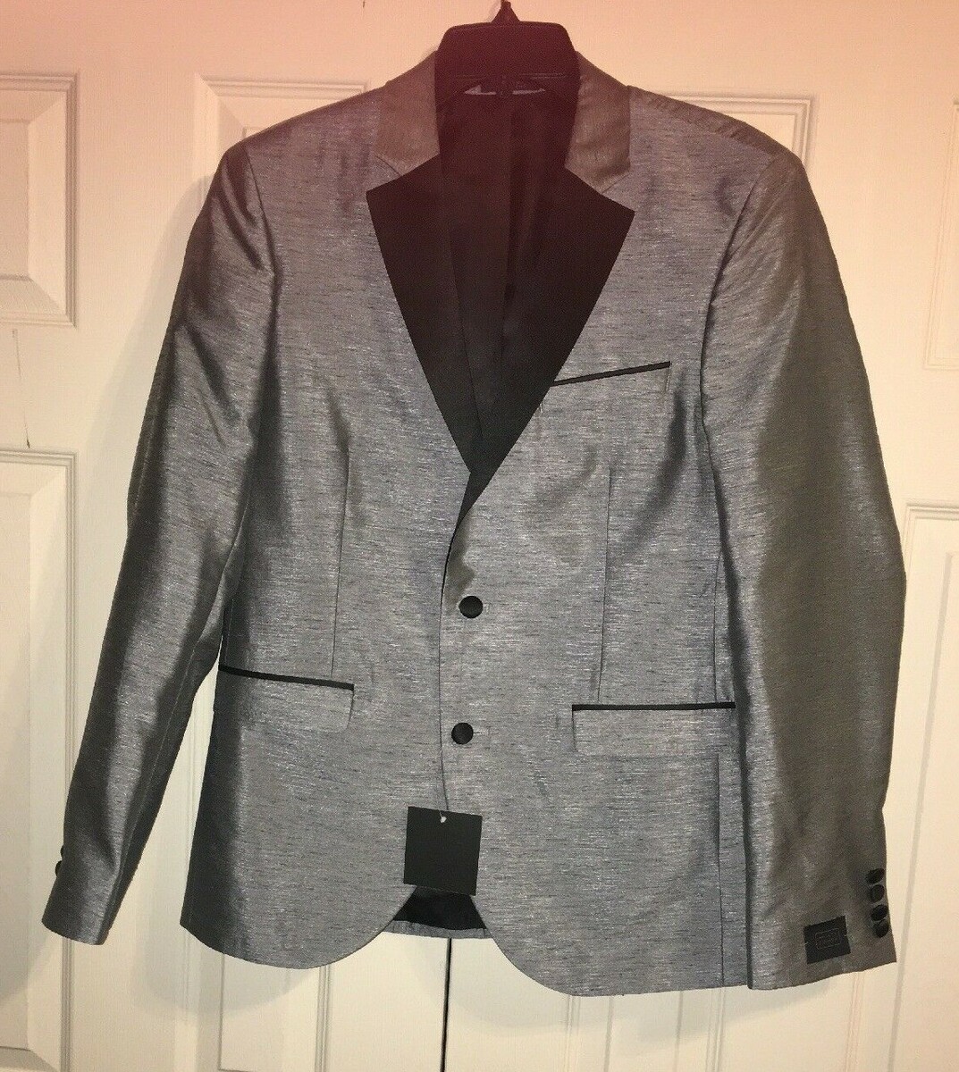 14th & Union Slub Two Button Notch Lapel Extra Trim Fit Jacket SILVER sz 40R new