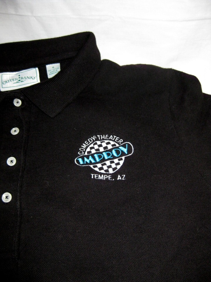 IMPROV Tempe AZ Comedy Club Theater WOMEN'S Black Embroidered Polo Shirt 90s