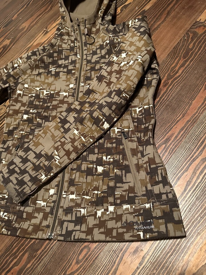 Columbia Titanium SMALL Soft Shell Fleece REVERSIBLE Camo Jacket Coat Hooded
