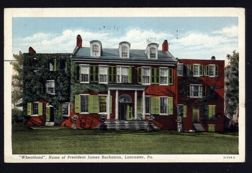 1940 WHEATLAND Home of PRESIDENT BUCHANAN, Lancaster PA * linen posted message