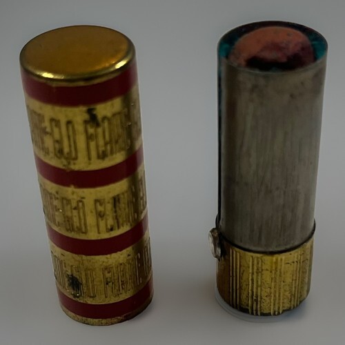 Metal lipstick container. Still has lipstick in it. I did not push force it up. It is a bit stiff. This is from the 1950?s. Neat item and metal case!!