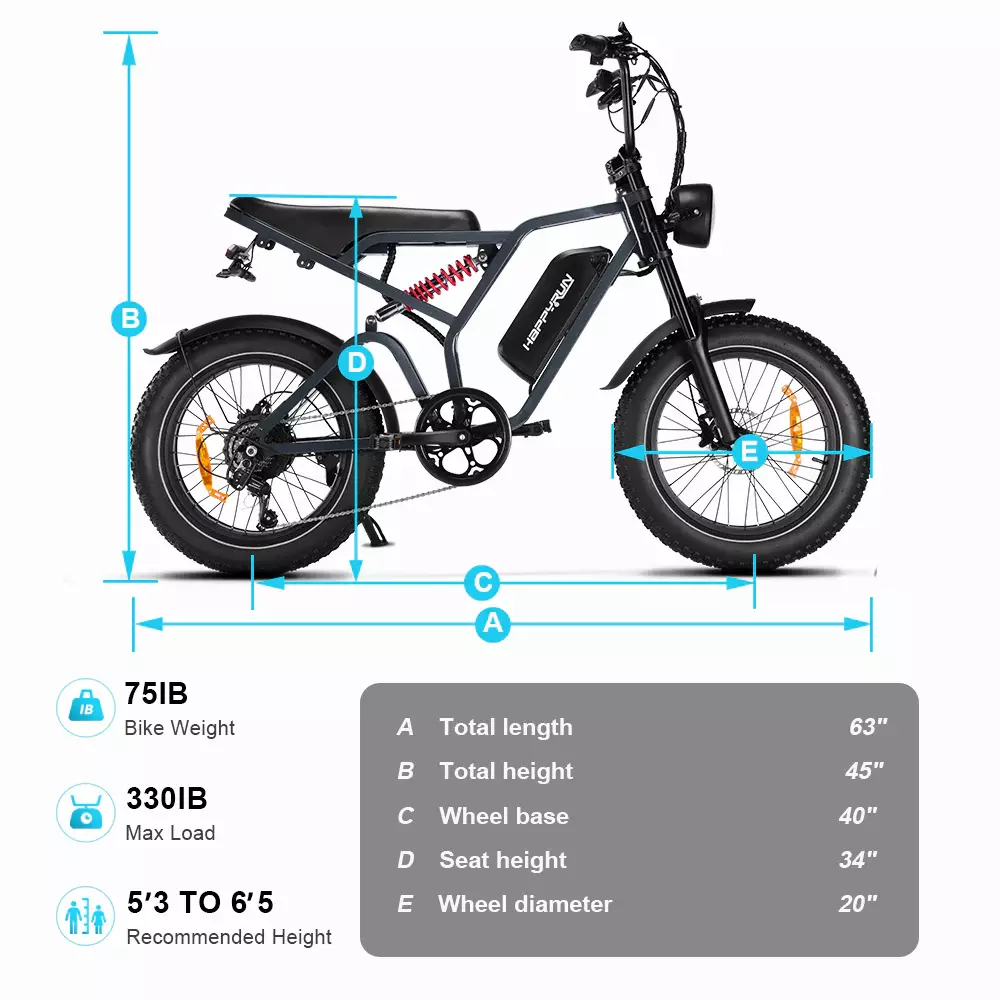 Happyrun Tank G60 Pro 2000W Moped Style Offroad Electric Bike Fat Tire