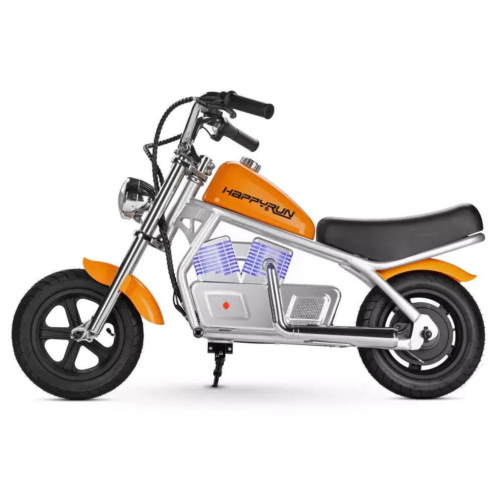 Happyrun Pulse 11 Kids Electric Motorcycle! Perfect for kids aged 5-12, this child's electric motorcycle offers safe, fun, and thrilling rides.