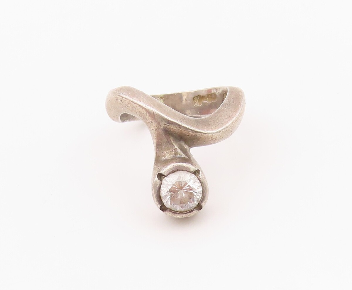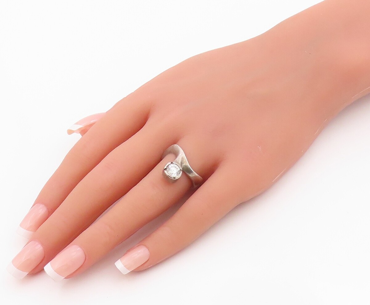 925 Sterling Silver Vintage Ring MEXICO Modernist Round CZ Band Sz 6.5 RG36348