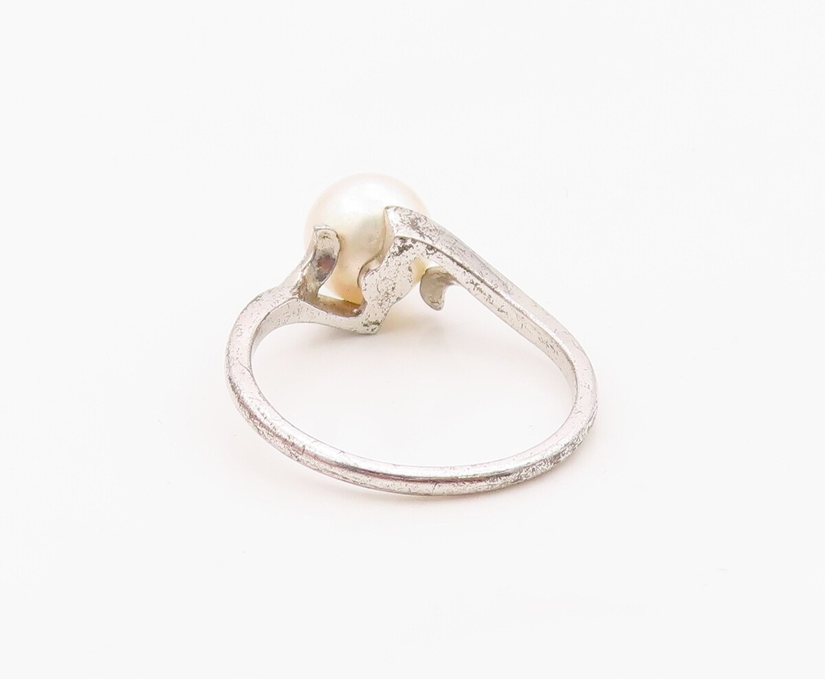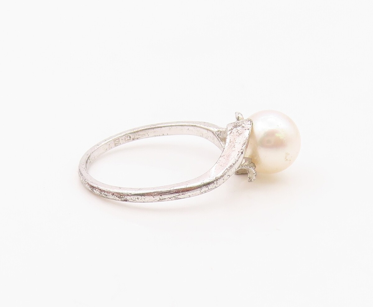 925 Sterling Silver Vintage Ring MIKIMOTO Elegant Pearl Leaf Sz 6.5 RG36343