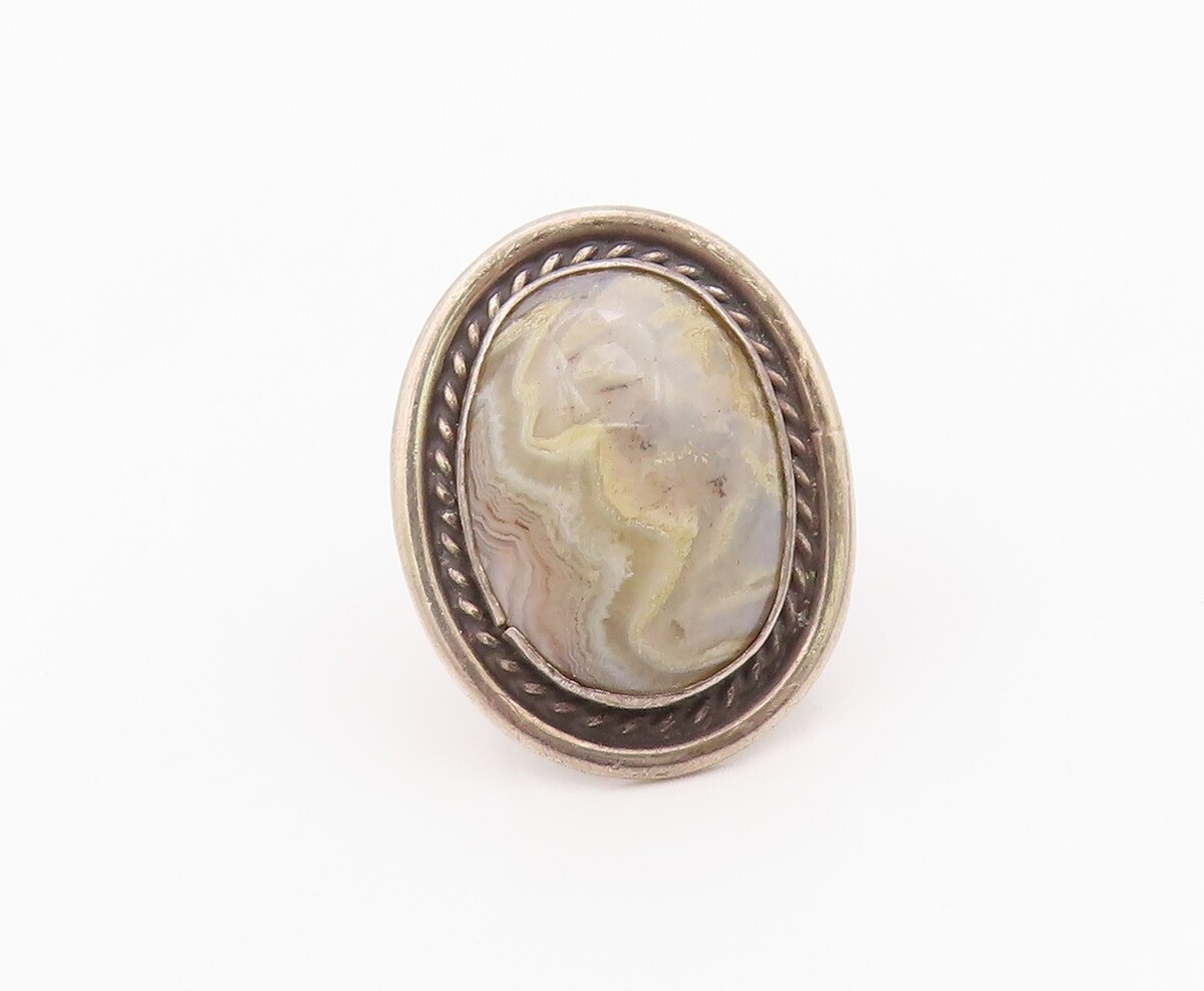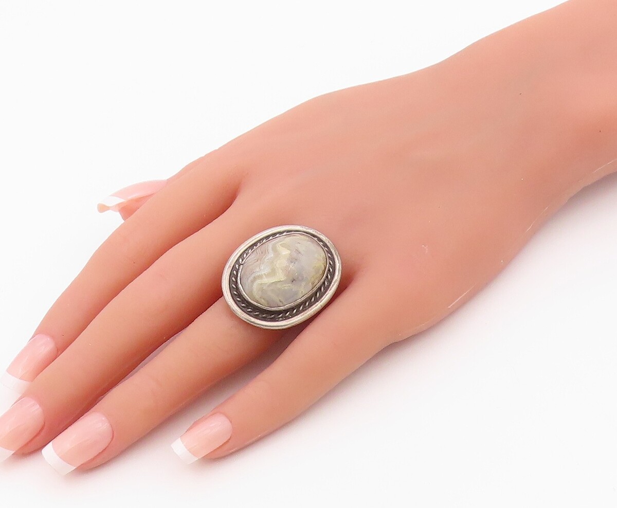 925 Sterling Silver Vintage Ring NAVAJO Jasper Twisted Rope Band Sz 6.5 RG36345