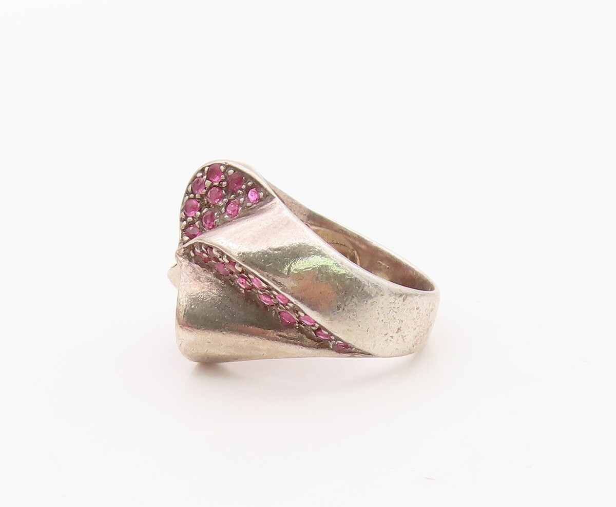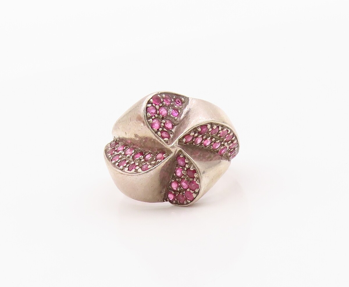 925 Sterling Silver Vintage Ring Elegant Ruby Pave Pinwheel Band Sz 6 RG36372
