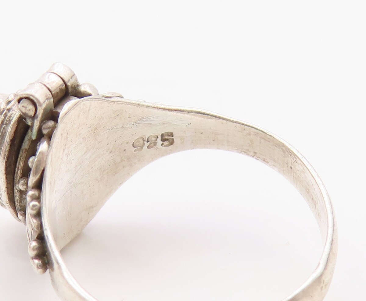 925 Sterling Silver Vintage Ring Garnet Statement Band OPENS Sz 6.5 RG36369