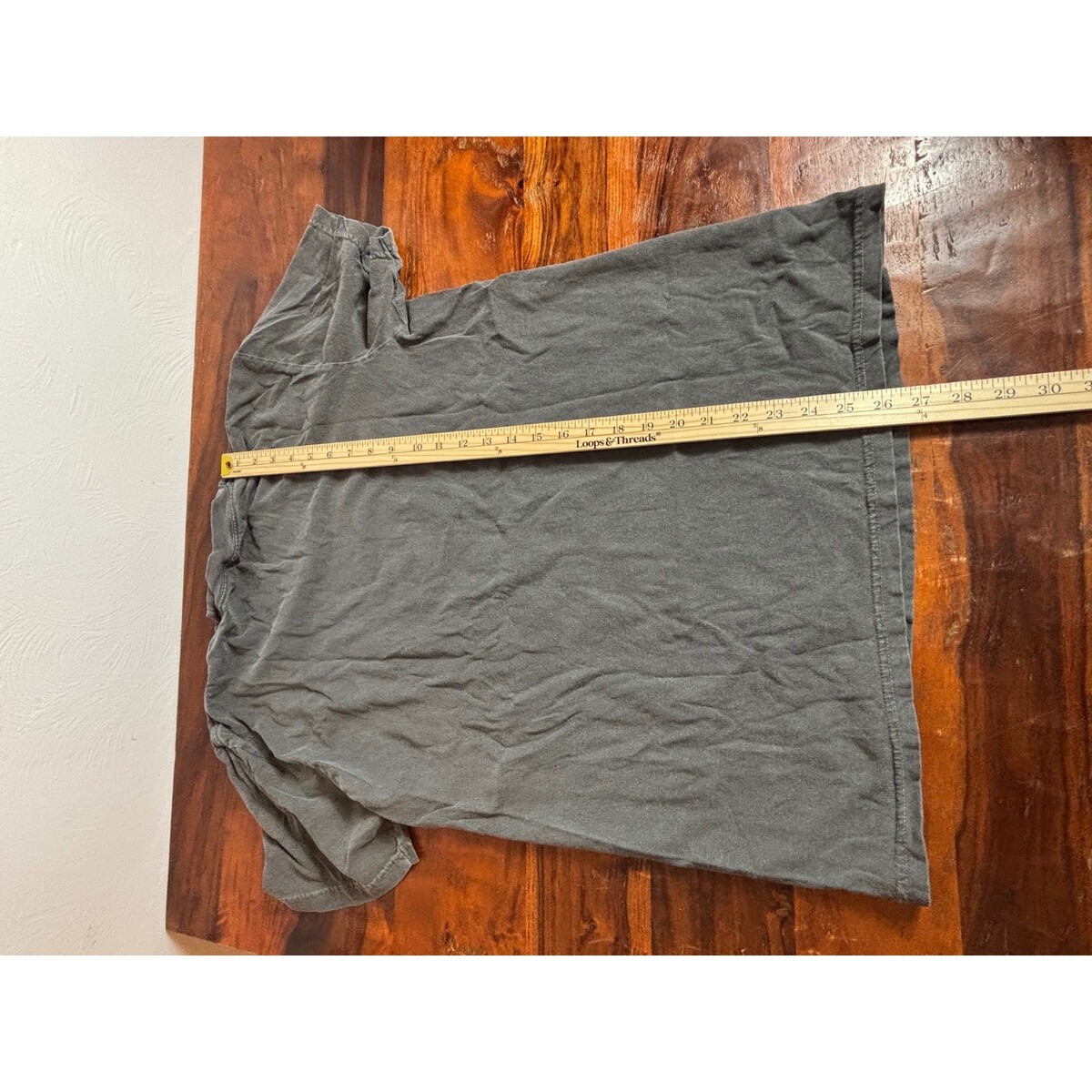 Olivia Rodrigo GUTS World Tour 2024 concert t-shirt in a faded black or charcoal wash. This official tour merchandise features a vibrant purple and white graphic on the front with the text "Spills Her Guts Live!" and "bad idea right?". The back is solid. Made from 100% cotton, it offers a soft, lived-in feel perfect for fans of the pop sensation.