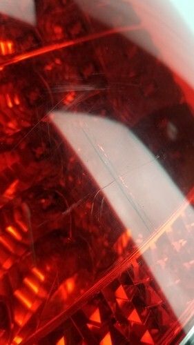 Has a crack that you cannot feel from the outside and a few scuffs as shown in photos.