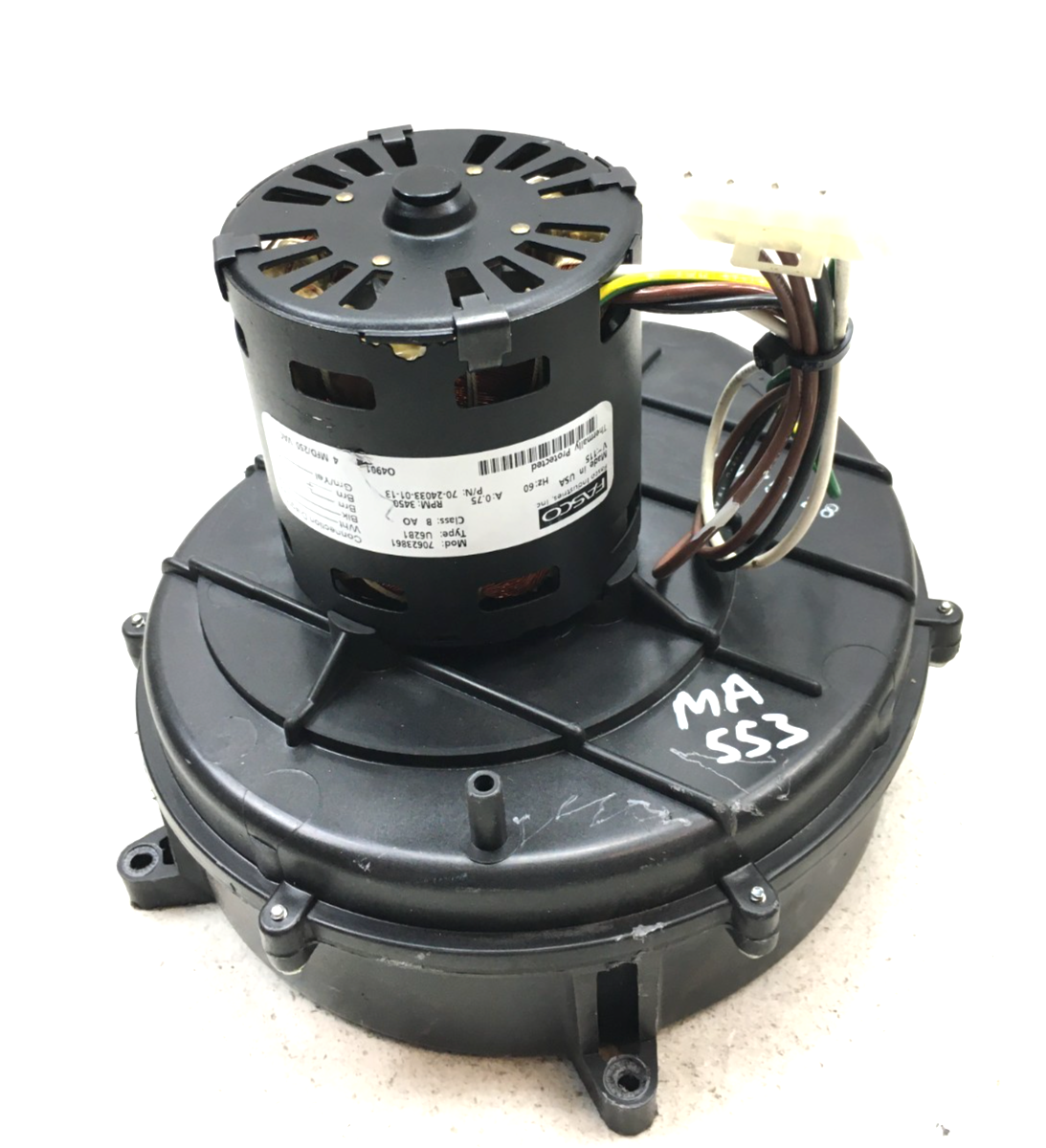 This is FASCO 70623861 Inducer Blower Motor Assembly 70-24033-01-13 115V 3450 RPM used HVAC part.